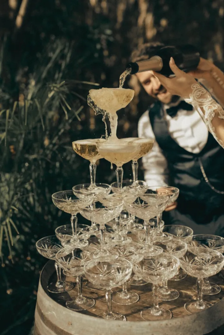 Includes: premium coupe glassware, setup, styling, and service staff. Champagne can be supplied or selected in collaboration with us.